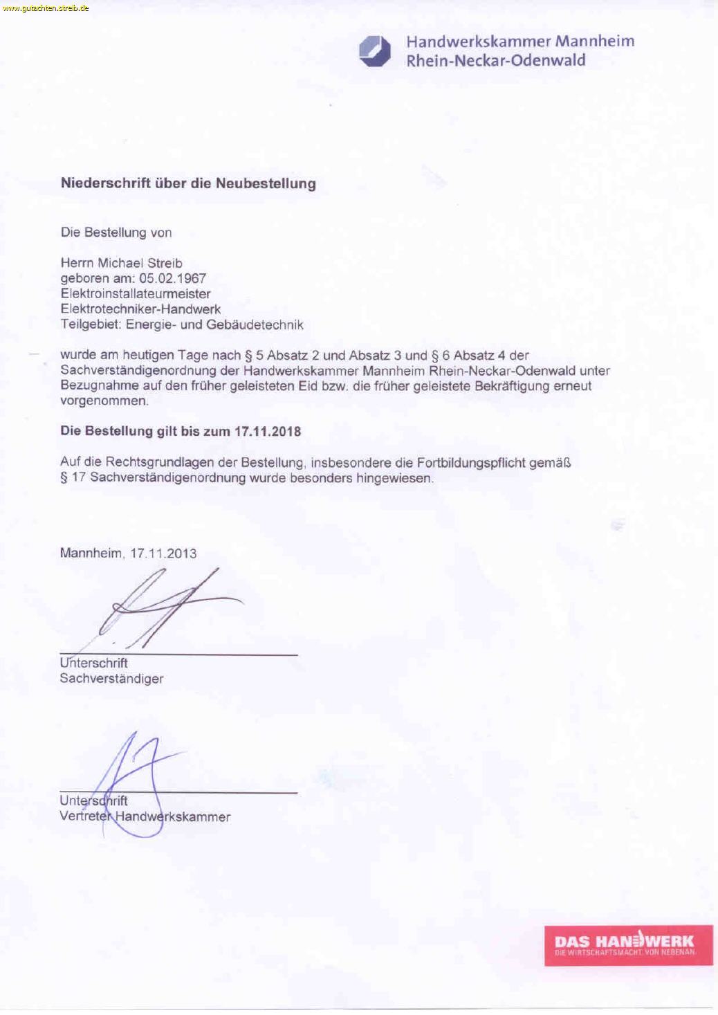 Stv. Prüfungsausschußvorsitzender HWK Mannheim Fachkraft für Regenerative Energie Mitglied im Netzwerk "Energieberater" der Stadt Heidelberg April 2011 Ausbildung zum Mediator für Sachverständige im Handwerk